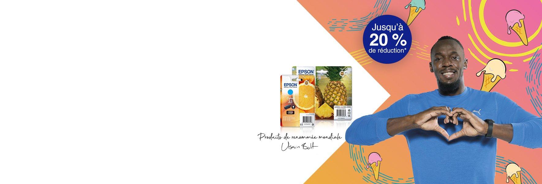 * Code promotionnel valable jusqu’au 02.07.2023. Saisissez le code S20 dans votre panier afin d’obtenir 20 % de réduction sur votre multipack de cartouches d’encre ou S15 afin d’obtenir 15 % de réduction sur les cartouches individuelles. Les encres éligibles sont signalées par des badges promotionnels indiquant -20 % ou -15 %. L’offre n’est pas valable pour les cartouches XXL, ni pour les cartouches destinées aux imprimantes grand format et EcoTank.