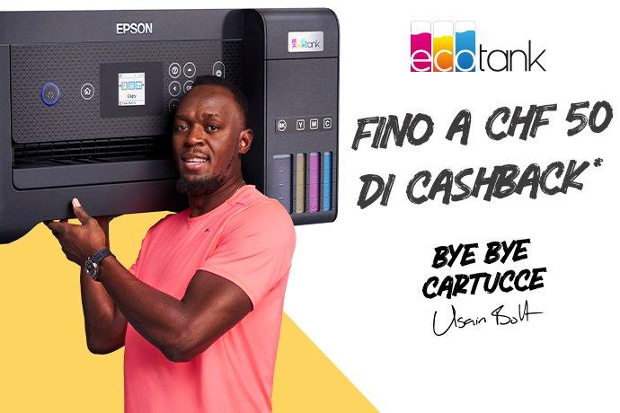 Stampa senza cartucce acquistando una delle stampanti EcoTank selezionate dal 15 settembre 2024 al 31 gennaio 2025 e richiedi fino a 50 CHF di cashback.