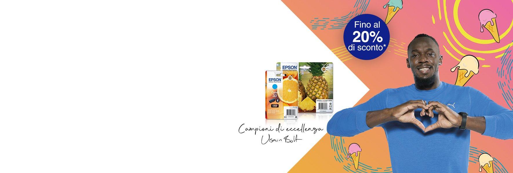* Voucher sconto valido fino alle 23:59 del 02/07/2023. Inserisci il codice S20 in fase di check-out per ottenere lo sconto del 20% sulla tua confezione di cartucce di inchiostro multipack; inserisci S15 per lo sconto del 15% sulle confezioni di cartucce di inchiostro singole. Gli inchiostri in offerta si riconoscono dai bollini promozionali che indicano -20% o -15%. Sono esclusi dall’offerta le cartucce XXL, le taniche per stampanti di largo formato e i flaconi per EcoTank.